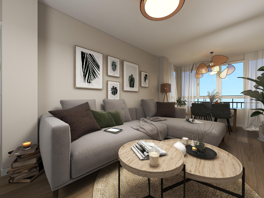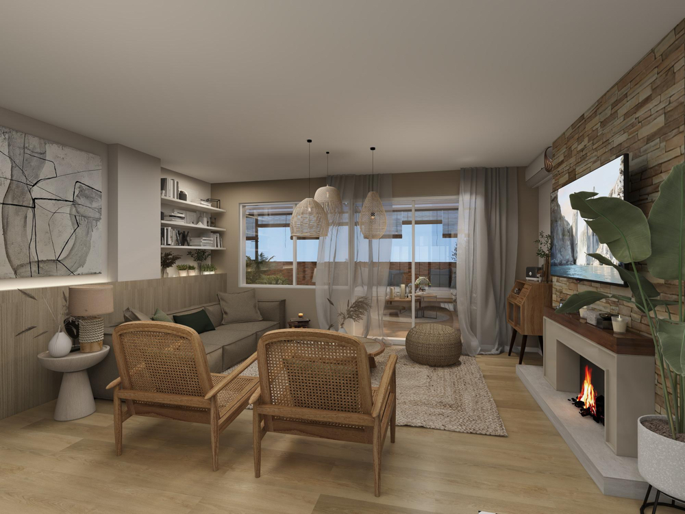 - Piso en porcelanato y áreas sociales en madera