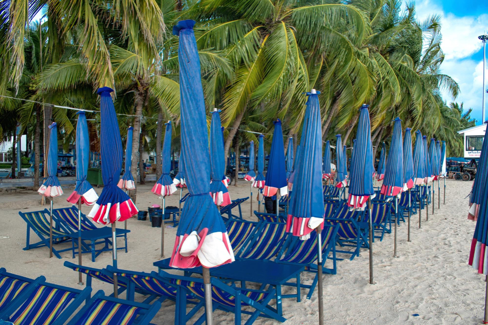 - Playa privada con áreas sombreadas y tumbonas